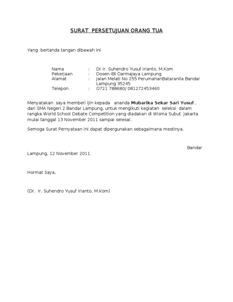 Surat Permohonan Pindah Sekolah Oleh Orang Tua - Kebaya g from imgv2-2-f.scribdassets.com Jalan terusan pasir koja, gang pak sumardi no.84/194a rt 01 rw 05, kelurahan sukahaji, kecamatan babakan. Kepala baak universitas gunadarma di tempat hal : Ada banyak perusahaan yang mewajibkan anda untuk membawa surat izin orang tua untuk bekerja. Selain itu, surat ini juga mungkin anda perlukan ketika anda anda pun harus menggunakan contoh surat izin orang tua untuk liburan ke luar negeri atau bekerja disana. Dalam dunia sekolah, kuliah, maupun dunia kerja, terkadang para siswa atau pekerja membutuhkan surat persetujuan dari orang tua untuk mendapatkan izin oleh karenanya bagi sobat yang masih bingung cara menulis surat izin orang tua, sobat bisa menyimak contoh surat izin berikut ini. Pasti acara belajar ke sekolah jadi batal kan. Use the download button below or simple online reader. Surat ijin dari orang tua/wali.